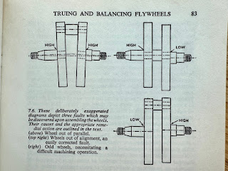 Once these were pressed together, but before installing the nuts, I checked to make sure that the two flywheels were parallel to one another. All of these procedures are very well described my Phil Irving in his book, Tuning for Speed.